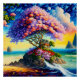 A beautiful digital painting of a lush green island in the middle of the ocean. The island is covered in lush trees and flowers, and the water is a clear blue. A small boat is anchored in the bay, and a few people are relaxing on the beach. This painting is perfect for anyone who wants to escape to a tropical paradise.