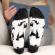 This fun Halloween socks are bright and colorful. The small print is crisp and shows the fun details. The softness of the socks feels nice on my feet and ankles. .