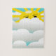 YELLOW SUN FACE HIDING BEHIND WHITE FLUFFY CLOUDS