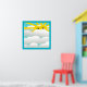 YELLOW SUN FACE HIDING BEHIND WHITE FLUFFY CLOUDS