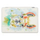 I was super excited when I got my cover in. It is attached by a magnet across the edge. I don’t think it will be very protective but it is very cute. I’m going to keep my iPad in a sleeve and use this face cover while I have it out. It folds to create a tilt for better viewing and to keep the iPad at a slight angle for typing. The colors are bright and it is fun. I’ve really enjoyed it. The personalization looks like amazing. It is the same color as the picture and is the same brightness. Well done! Very nice.
