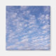 High puffy little clouds mostly obscure a bright blue sky on front. Same mackerel sky image horizontally flipped on back.