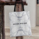 A striking background of bookmatched white and gray marble creates interest and intrigue on this designer tote bag by 1201AM. Your name or business name is displayed in bold text in the center for a high fashion look. The perfect on-trend accessory! Great to use for client giveaways or for personal use. Design © 1201AM Design Studio
