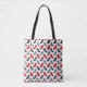 This cute tote bag features a pattern of red, black and gray high heels. The background is featured in white but can easily be changed by clicking on Customize It.