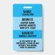 A blue background and solid all-caps fonts add importance and ease of readability to this detection dog name and photo ID badge. Personalize with animal's name, handler name and address, plus badge #. Font type and font colors can be modified as desired.