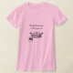 My overall review is that the T-shirt is nice, it fits true to size however the font is significantly smaller than advertised and you can't read it. The printing is unreadable and there is a strain to read it. It does not look like the advertised product. Maybe the shirt color is darker or a larger more visible font should have been used. Photos with and without flash and font is barely legible.