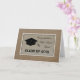 This high school graduation card features a black graduation cap on the left side with the words "Congratulations High School Grad" on the right side and the words "CLASS OF YEAR" down below. All design elements appear on a tan burlap background which appears to be inside a frame which is edged in white and surrounded with a darker tan burlap. Inside the card is a wonderful sentiment for the high school grad which makes a lovely high school graduation card. Copyright Kathy Henis