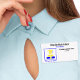 High school reunions can be large events so it helps to have name tags for attendees. This blue and yellow template allows you to replace the graduation art with your school logo. A square image will work best. Personalize the text fields, remove any text or click customize to select a typeface color, size, and style your prefer. The tag allows room for the attendee's name on the bottom right.