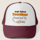Een pet met oranje en bruine letters met de tekst Leraar aangedreven door Cafeïne. Leuk voor iemand met het beroep van Leraar. als plaatje een bliksem afgebeeld.