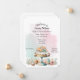 A very pretty High Tea Bridal Shower Tea Party invitation framed on delicate pink and blue clouds with a colorful dessert stand surrounded by flowers and cakes.