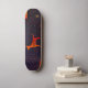 This is an abstract skateboard deck with a high tech feel due to its geometric shapes. There is also a large breed dog silhouette with a customizable name.