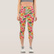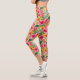 These women's high waisted capri leggings are shown in a multi color tropical floral palm print design.