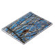A photograph of an American Robin looking up whilst it's perched on a tree branch. The tree branches give an abstract look with white and grey lines streaking all over the blue sky background. Image Copyright ©2021 Kimberly J Tilley.
