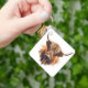 Highland Coo Keyring- single highland cow- face on with horns and white background.