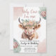 Highland Cow Boho Watercolor First Birthday Invitation
