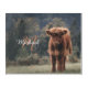 Highland cow calf autumn grass field photograph. Stunning young calf of highland scottish cattle on an autumn grassy field with muted colors. Beautiful dark hairy orange coat contrasting with light yellow green grass and trees in bokeh in background. Custom personalizable monogram with your name and inital on the left.
