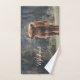 Highland cow calf autumn grass monogram initial bath towel set