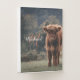 Highland cow calf autumn grass field photograph. Stunning young calf of highland scottish cattle on an autumn grassy field with muted colors. Beautiful dark hairy orange coat contrasting with light yellow green grass and trees in bokeh in background. Custom personalizable monogram with your name and inital on the left.