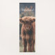 Highland cow calf autumn grass field photograph. Stunning young calf of highland scottish cattle on an autumn grassy field with muted colors. Beautiful dark hairy orange coat contrasting with light yellow green grass and trees in bokeh in background. Custom personalizable monogram with your name and inital on the left.