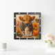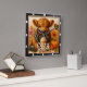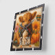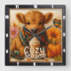 This adorable square wall clock features a fluffy brown highland calf wrapped in a cozy plaid scarf, alongside a pumpkin spice latte. Surrounded by autumn flowers, a plump pumpkin, and scattered fall leaves, the design perfectly captures the warmth and charm of the "Cozy Season."