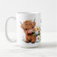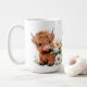 A custom mug featuring a cute highland cow accompanied by daisies. A fun addition to add to your mug collection this fall.