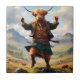 Highland Cow Dancing The Highland Fling, Ceramic Tile