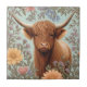 Highland Cow Pastel William Morris Inspired Floral Ceramic Tile