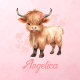 Personalized kids room highland Cow Pink floral wall decor.