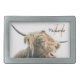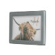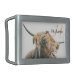 Highland cow portrait custom name initial monogram. Portrait photograph of a majestic orange brown highland cattle on a foggy day with white background.