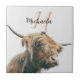 Highland cow portrait custom name initial monogram ceramic tile