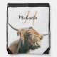 Highland cow portrait custom name initial monogram drawstring bag
