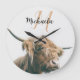 Highland cow portrait custom name initial monogram. Portrait photograph of a majestic orange brown highland cattle on a foggy day with white background.