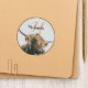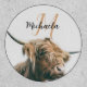 Highland cow portrait custom name initial monogram. Portrait photograph of a majestic orange brown highland cattle on a foggy day with white background.