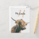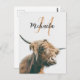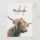 Highland cow portrait custom name initial monogram. Portrait photograph of a majestic orange brown highland cattle on a foggy day with white background.