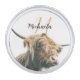 Highland cow portrait custom name initial monogram silver finish lapel pin