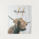 Highland cow portrait custom name initial monogram. Portrait photograph of a majestic orange brown highland cattle on a foggy day with white background.