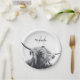 Highland cow portrait initial monogram black white paper plates