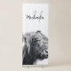 Highland cow portrait custom name initial monogram in black and white. Portrait photograph of a majestic highland cattle on a foggy day with white background in black and white.