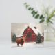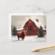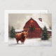 Highland Cow Red Barn Christmas Wreath Postcard
