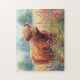 Highland Cow Watercolor Wildflower Field Jigsaw Puzzle