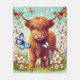 Highland Cow with Butterflies and Spring Flowers Fleece Blanket