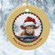 Highland Cow with Cute Santa Hat n Name Christmas Ceramic Ornament