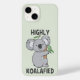 Highly Koalafied - Highly Qualified. A cute gray Koala cartoon graphic drawing with a koala bear pun. Funny and sweet wild animal design. Australian wild baby animal on a eucalyptus tree with gum leaves