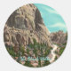 Vintage postcard showing the scenic highway to Mount Rushmore in The Black Hills National Forest in South Dakota. Reprinted on these stickers.