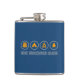 Well made flask, a little better than I had expected. Flask came in clear plastic box which gave it a nice presentation when I took it out of the zazzle packaging. Image is not printed on flask but on sticker. Don't know how this will hold up I haven't used it yet. This would make a Great gift! I plan to purchase more for friends! Cheers. I thought a little brighter than computer. Very crisp, writing wasn't