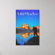 Stylized art of hiker overlooking Thousand island lake and Banner Peak at sunrise with "John Muir Trail" text. California, Sierra Nevada Mountains, Ansel Adams Wilderness, Thousand Island Lake. John Muir Trail Mile 044.