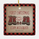 Hiking Boots Baby's First Christmas Plaid Ceramic Ornament