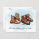 Announce your new hiking buddy with these adventurous pregnancy announcements! This design includes watercolor graphics of hiking boots and can include your custom message on the back.