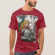 My 11 yo wore adult XL (5’7” 165#). The 8yo is small framed. She wore adult small and tied it in the back. Grandma wore adult large with long sleeve shirt underneath. Tall girl adult medium. Dark haired male adult large. Good quality dark Heather gray, Gildan brand shirt. -it was next up from basic choice and cost about $20 per shirt. Not too thick or thin. Washed and dried well, no major shrinkage. Not see-through. Can wear a bra under it fine. Screen print is just as shown and well done, front and back.