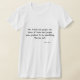 My overall review is that the T-shirt is nice, it fits true to size however the font is significantly smaller than advertised and you can't read it. The printing is unreadable and there is a strain to read it. It does not look like the advertised product. Maybe the shirt color is darker or a larger more visible font should have been used. Photos with and without flash and font is barely legible.